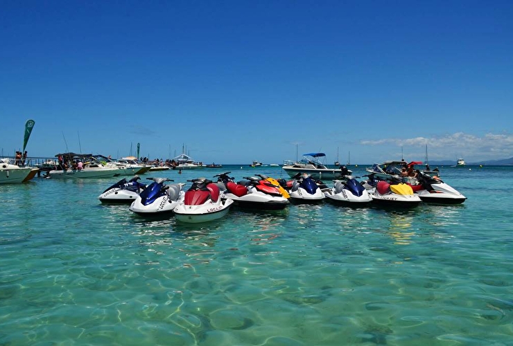Venez découvrir le magnifique lagon de Nouvelle-Calédonie en Jet Ski et faire des rencontres inoubliables avec les dauphins, les tortues… Accostez sur des îlots paradisiaques et naviguez en toute sécurité sur des eaux transparentes. LOCAJET est la seule base FFM (Fédération Française de Mononautisme) de Nouvelle-Calédonie. Alors n'attendez plus ! Important : les offres Solo et Duo sont des prestations adultes. Pour tout enfant accompagnant de moins de 10 ans et de plus de 1,35m, réservez l'option "Enfant" et il pourra vous accompagner sur les offres Solo ou Duo (vous serez donc 1 adulte + 1 enfant sur un Jet sur l'offre Solo et 2 adultes + 1 enfant sur un jet pour les offres Duo). A partir de 11 ans, c'est la prestation adulte qui s'applique.