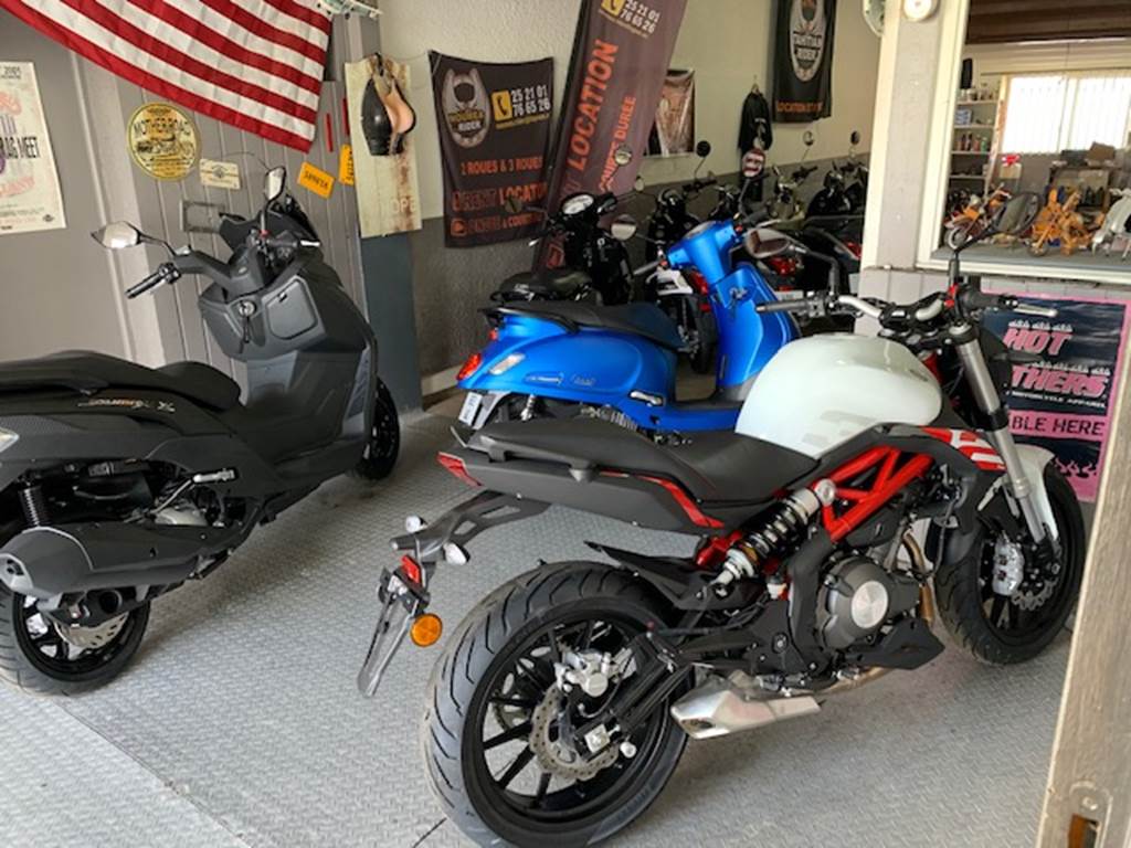 NOUMEA RIDER vous propose à la vente et à la location sur des courtes ou longues durées des scooters et motos. Vous bénéficierez d'une flotte de machines très récentes. Effectivement, les scooters, du 50cc au 500 cc, sont remplacés tous les ans et les motos, tous les deux ans : profitez ainsi des derniers modèles BENELLI ! NOUMEA RIDER, c'est aussi l'assurance de prix tout compris : location du véhicule, casques, antivol et assurance tout risque. Vous avez réservé et la météo est capricieuse ? NOUMEA RIDER vous permet de reporter votre location sans frais supplémentaire. Enfin, NOUMEA RIDER, c'est aussi une boutique de vêtements « BIKER » cuirs, gilets, blousons, t-shirts, sweats et divers accessoires à découvrir sur place. Une journée de location est comptabilisée pour toute location entre 8h à 17h.