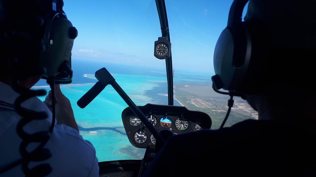 L'option prise fait entrer le vol dans le cadre d'un travail aérien, accessible aussi aux particuliers. - Option Pilotage : Lors de votre vol vous serez amené à piloter durant quelques minutes. Le Pilote-instructeur vous donnera les commandes après quelques recommandations afin que vous puissiez découvrir la maîtrise de l'appareil dans les 3 dimensions. Un max de sensations ! Supplément de 5 300 cfp.