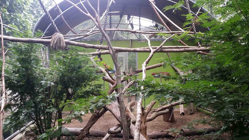 Une grande volière a été aménagée dans laquelle on accède par un sas permettant de se retrouver au milieu de toutes sortes d’oiseaux. Bien d’autres animaux animent le parc comme des singes, des paons, des boucs et même un vivarium abritant des serpents.