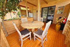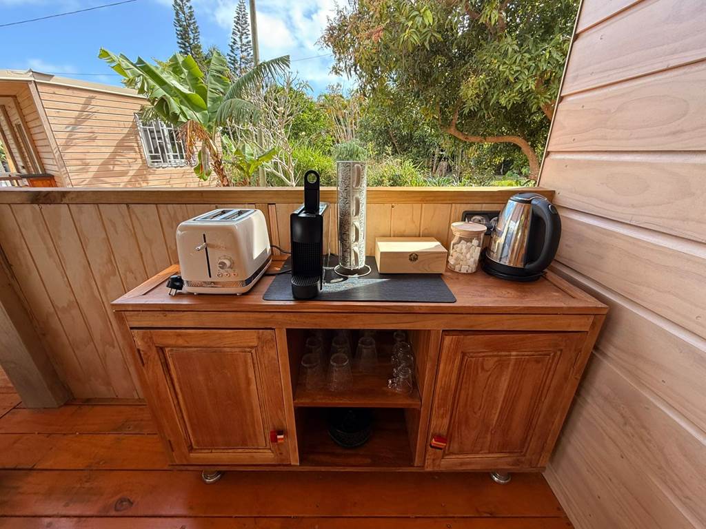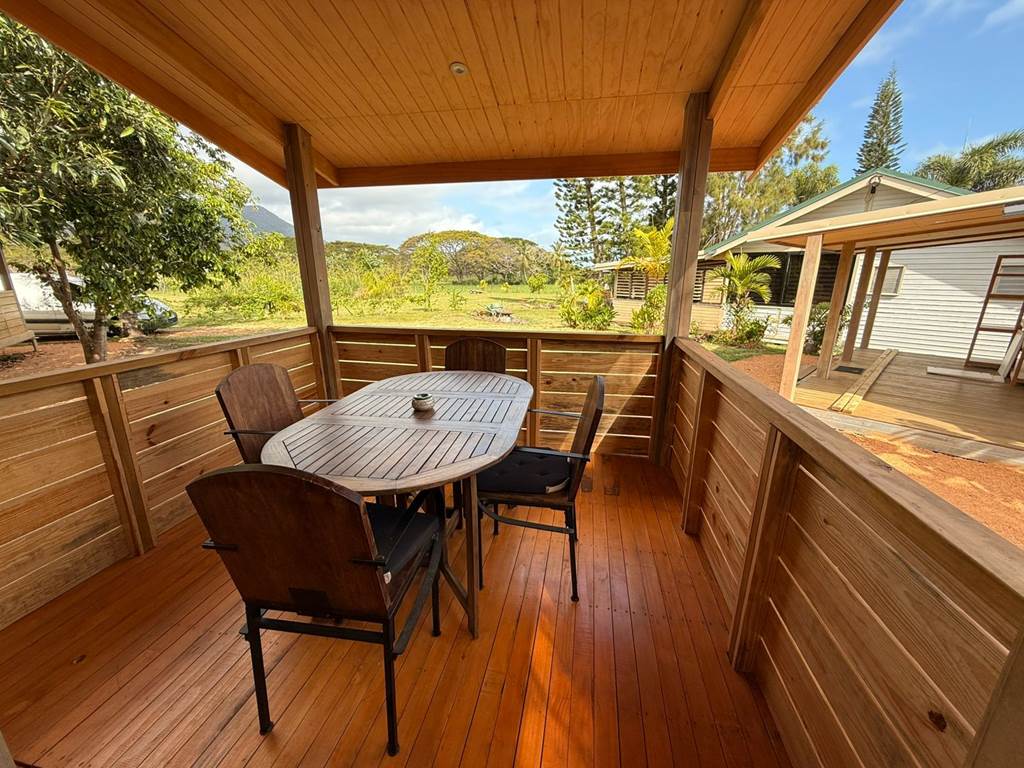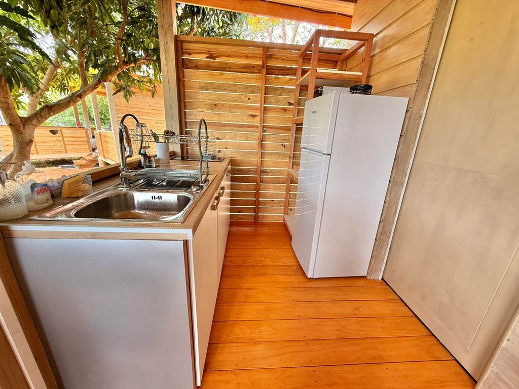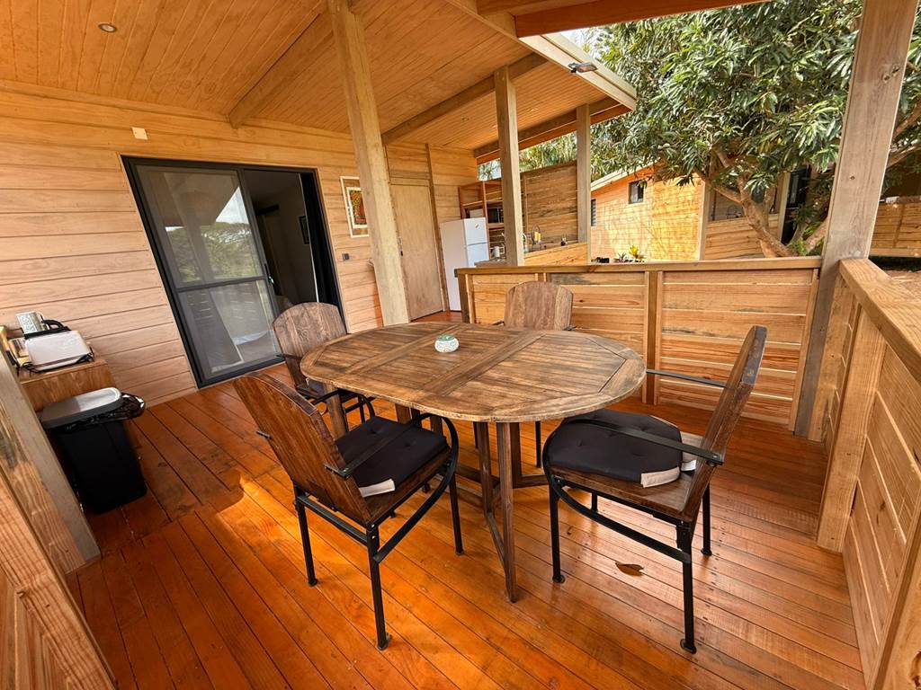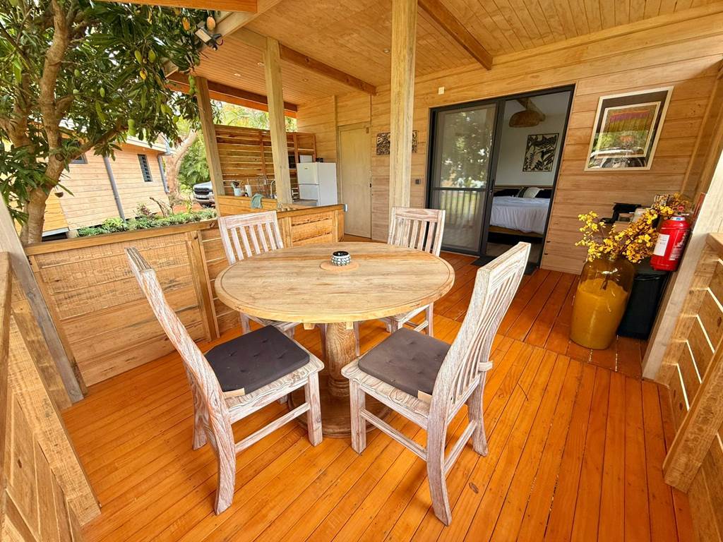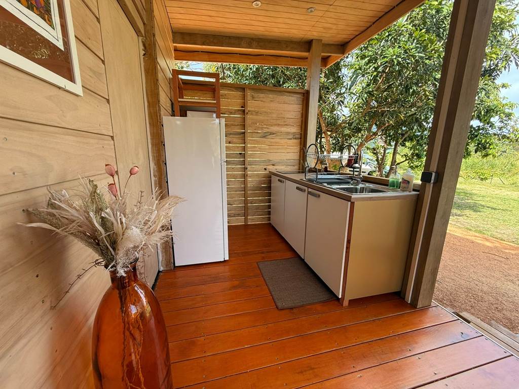 Situé à Gouaro-Déva, au cœur d'un écrin naturel préservé, à quelques minutes des plages paradisiaques de Poé et de la Roche Percée et du célèbre Domaine de Déva, le Bololo vous ouvre ses portes pour un séjour authentique, convivial et ressourçant en Nouvelle‑Calédonie. 🌿 Nature, confort et calme Notre lodge intimiste propose trois hébergements en bois, pensés pour votre confort et votre tranquillité : Deux bungalows familiaux : une grande chambre (lit 160 cm maxi confort ), une petite chambre avec deux lits superposés une personne, salle d'eau, cuisine équipée et grande terrasse privative avec espace repas. Un bungalow pour couple : une grande chambre (lit 160 cm maxi confort), une salle d'eau privative, une cuisine équipée et une grande terrasse privative aménagée pour vos repas en extérieur. Tous nos bungalows sont climatisés et disposent du wifi haut-débit gratuit. 🐾 Les chiens sont les bienvenus Parce que vos compagnons à quatre pattes font partie de votre famille, nous accueillons vos chiens pour que vous profitiez de votre séjour en toute sérénité. 🍹 Accueil chaleureux Alain et Cécilia vous accueillent personnellement et de veillent à ce que votre séjour au Bololo soit paisible et confortable. 🌞 Respirez, ressourcez-vous et savourez chaque instant Entre nature sauvage, lagons turquoise et moments partagés, le Bololo est le lieu où l'on se reconnecte à l'essentiel, dans une atmosphère conviviale et apaisante. 🎯 Activités et découvertes Le Bololo est idéalement situé pour profiter des trésors de la région : Domaine de Déva : randonnées, VTT, balades à cheval et panoramas spectaculaires sur le lagon classé au patrimoine mondial de l'UNESCO. Golf de Déva : parcours de 18 trous au bord du lagon, accessible à tous les niveaux. Plages de Poé et de la Roche Percée : sable blanc, lagon turquoise, baignade, kayak, planche à voile ou farniente au soleil. Sports et aventures : surf, kitesurf, parapente, sorties en bateau à fond de verre, hydravion, ainsi que balades culturelles et découvertes locales. Important : Pour confirmer votre réservation, un acompte de 50% du montant de la réservation est demandé après finalisation de votre réservation en ligne. À bientôt au Bololo Lodge !