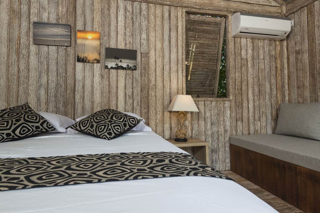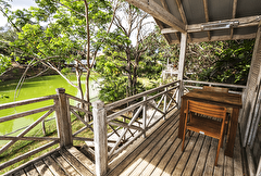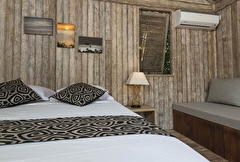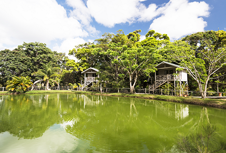 Installé dans une ferme en activité, ce lodge se compose de 4 cabanes dont 3 perchées entre les arbres et 1 cabane famille . Prenez de la hauteur dans votre cabine perchée à 3 mètres ou profitez de la Cabane Famille tout confort. Confortables et originales, les cabanes vous offrent depuis leurs terrasses une vue sur le lac, la plantation et les collines boisées de gaïacs. Vous profiterez également d'une belle piscine au faré principal. Draps et serviettes fournis. Les petits plus : bouilloire et cafetiere nespresso avec thé de bienvenue, dans chaque cabane. Salle d'eau privée juste à côté (douche, lavabo et WC) et cuisine commune (dans le parc), pour les cabanes perchées. Notre petit faré cuisine commune est à votre disposition pour y préparer vos repas : micro-ondes, plaque de cuisson a induction, vaisselle, batterie de cuisine et barbecue (prévoir le charbon), et même mini BBQ à gaz (recharge en vente sur place). Salles d'eau et coin cuisine intégrés pour la cabane famille. Le Farino Lodge vous accueille tous les jours. Les week-ends (à partir du vendredi), un minimum de 2 nuits est requis pour tout séjour (arrivée le vendredi soir). Le prix comprend la nuitée, l'accès a la piscine, le petit faré cuisine avec son BBQ (à bois ou charbon, a prévoir). Si vous cherchez un point de départ pour explorer la région et ses nombreuses richesses (Parc des Grandes Fougères, Fort Teremba, Marché Farino, la plage de Ouano...) ou tout simplement pour une pause détente, le Farino Lodge est l'adresse idéale, à 1h20 de Nouméa. IMPORTANT : > Pour les Cabanes Perchées : Les cabanes sont composées d'un lit double Queen size (160cm), la capacité maximale est de 2 personnes. Un bébé de moins de 1 ans peut être hébergé si vous l'indiquez avec son âge lors de la réservation dans la case commentaires. N'oubliez pas d'apporter un lit ou de réserver l'option sur notre site. > Pour la Cabane Perchée Plus+ : La cabane est composée d'un lit double Queen size et d'un lit simple. La capacité maximale est de 2 adultes et un enfant de moins de 10 ans. Tarif/nuit pour 2 adultes en semaine : 13 900 frs Tarif/nuit pour 2 adultes et 1 enfant de moins de 10 ans en semaine : 16 400 frs Tarif/nuit pour 2 adultes le weekend : 11 450 frs Tarif/nuit pour 2 adultes et 1 enfant de moins de 10 ans le weekend : 13 950 frs Afin de vous assurer de réserver votre séjour au bon tarif, merci de sélectionner l'âge de l'enfant dans le menu déroulant qui s'affiche lorsque vous indiquez dans le module "Réservez en direct" 2 adultes et 1 enfant. > Pour la Cabane Famille : Première chambre : La chambre est composée de deux lits double Queen size et d'un lit simple. Capacité max de 5 personnes dont 4 adultes maximum. Deuxième chambre : La chambre est composée d'un lit double Queen et de deux lits simples. Capacité max de 4 personnes dont 3 adultes maximum. Attention, l'accès à la deuxième chambre est possible pour toute réservation supérieure à 5 personnes. Mais si vous souhaitez réserver les 2 chambres pour moins, c'est possible avec un supplément, n'hésitez pas à en faire la demande par email. Tarif/nuit pour 4 adultes en semaine ou/et weekend : 19 900 frs Check in : De 15h à 19h - Check out : 11h Une surcharge de 5000f sera appliqué pour un check in tardif demandé. L'accueil pour les arrivées se fait entre 15h et 19h. Le jour du départ, nous vous remercions de quitter les lieux (hébergement et piscine) pour 11h au plus tard. Pour préserver le calme des lieux et votre tranquillité, nous n'accepterons aucune visite La carte bancaire enregistrée lors de votre réservation sera débitée de 50% du montant de la réservation au moment de la réservation, puis du reste la veille (si le client en fait la demande), sinon, obligatoirement le jour de votre arrivée. Jusqu'à 8 jours avant votre séjour, vous pouvez annuler sans frais, vous serez donc remboursé de la somme prélevée. Passé ce délai, 100% du montant de votre réservation peut vous être prélevé.