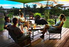 Le Gîte Cheratof est un hébergement familial, idéalement situé à quelques mètres seulement du magnifique lagon de Poé et à porté de vélo du domaine de Deva, centre de nombreuses activités pleine nature. Vous aurez la possibilité de dormir en case vernaculaire moderne en pisée tout confort de maximum 8 personnes, une chambre familiale de maximum 4 personnes ou en roulotte verdine tzigane de maximum 2 personnes, en formule avec ou sans petit déjeuner compris. Tous les logements sont équipés d'une kitchenette avec ses ustensiles ainsi qu'une plancha à gaz à disposition. La table d'hôtes aux saveurs calédoniennes est ouverte le vendredi et samedi sur réservation. Un grand spa-pool est à votre disposition, une terrasse avec un coin feu pour vous relaxer ainsi qu'un accès direct sur la plage de Poé. Des kayaks sont mis à disposition. Les lieux étant dédiés au calme et au repos, les anniversaires et autres fêtes ne sont pas autorisés. Veuillez noter qu'une carte de crédit est demandée pour garantir votre réservation mais elle ne sera pas débitée. Le paiement devra s'effectuer sur place en chèque ou espèce.