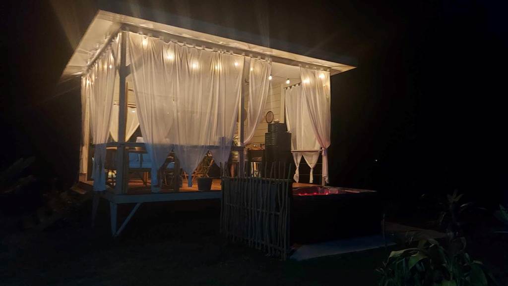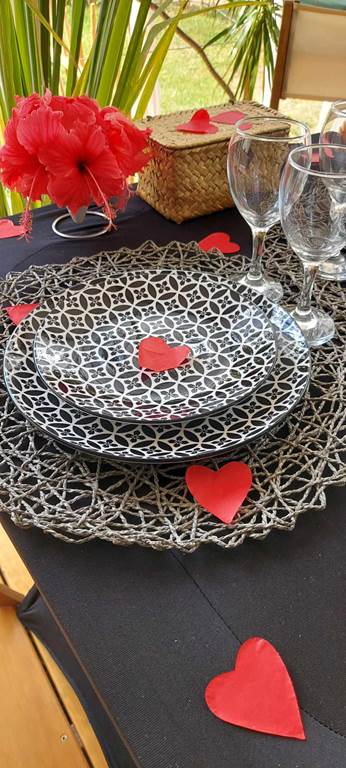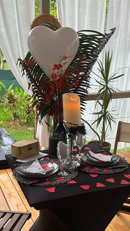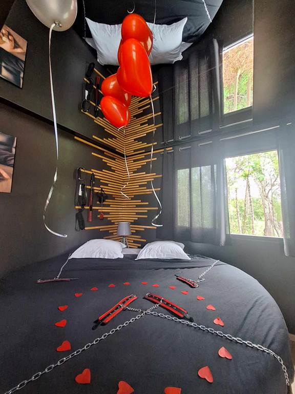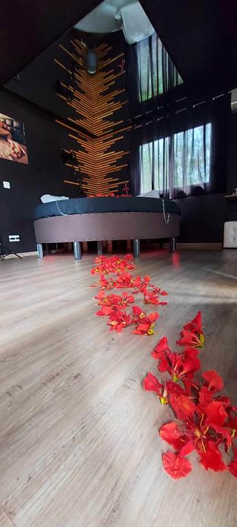Vous souhaitez sortir de la routine, passer une soirée sensuelle et romantique avec votre moitié ? La Love Room est le gîte qu'il vous faut pour surprendre votre partenaire, ou offrir un cadeau atypique à un couple d'amis. Nichée dans un écrin de verdure, la Love Room vous propose un espace complet pour passer un séjour plein de surprises. La Chambre, ambiance sensuelle, vous offre un lit rond de 2,20 m de diamètre, avec son miroir au plafond, un jacuzzi sur la terrasse, une table de massage avec ses accessoires pour stimuler les sens, une balançoire d'amour, un jeu de couple, accompagnés d'accessoires pour pimenter votre soirée et un trépied pour votre intimité. La terrasse vous met dans une ambiance romantique, avec ses voiles blancs et ses couleurs naturelles. La cuisine sur la terrasse vous offre tout le nécessaire pour préparer votre repas. La Love Room, c'est aussi un coin feu, avec du bois et une grille pour profiter de l'extérieur, mais aussi un accès à la plage et 2 kayaks à disposition. Le check in est à 17h et le check out est à 13h pour profiter de la matinée, du brunch, de la mer, du jacuzzi et bien d'autres choses. L'intimité du couple est totalement respectée : pas de vis-à-vis, et la Love Room est éloignée des habitations. La Love Room est un séjour d'évasion avec votre moitié, hors de Nouméa mais à seulement à 45 minutes, pour une nuit insolite, un moment sensuel et de partage, qui vous donnera envie de revenir et de recommencer ! La Chambre qui vous crée des souvenirs à vie. Veuillez noter qu'une carte de crédit est demandée pour garantir votre réservation. Elle sera débitée de 30% lors de la réservation. Le solde devra s'effectuer lors du check out, par carte, espèces ou chèque.