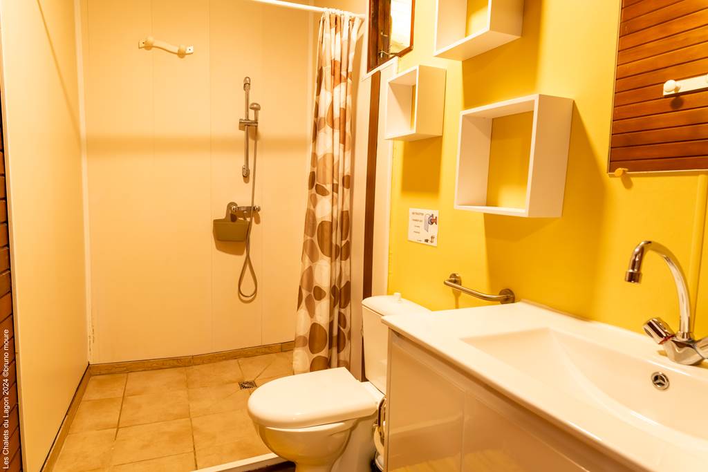 Venez vous ressourcer dans des chalets tout équipés situés à 200 mètres de la magnifique plage de Poé.