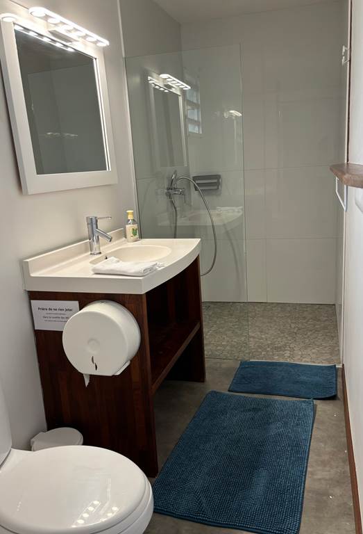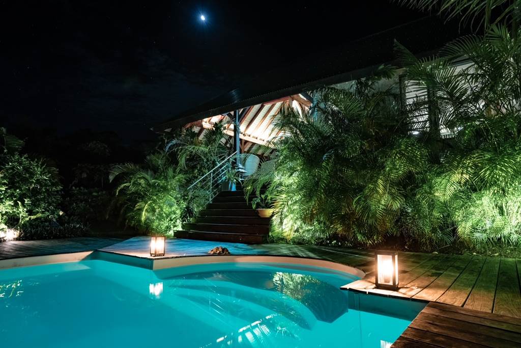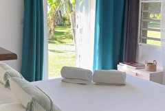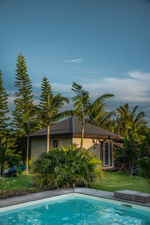 Poé Côté Lagon , ce sont deux bungalows climatisés tout confort situés sur un site exceptionnel, face au lagon de Poé, avec vue imprenable et accès direct sur le lagon et accolés au domaine de Deva. Quelques mètres seulement vous séparent de la plage. Vous pourrez profiter pleinement d'un environnement calme au sein d'un jardin tropical et arboré tout en vous rafraîchissant à la piscine de la maison. Deux kayaks et deux paddles sont à votre disposition pour découvrir la beauté des fonds transparents du Lagon. Vous pourrez aussi partir à la conquête des 11000 hectares du domaine de Déva à pied ou en vélo ! Au retour de vos activités, vous pourrez préparer vos repas dans la kitchenette attenante à votre bungalow. Important : - Venir en voiture jusqu'à Poé est indispensable. - Le site est calme et souhaite le rester. Pour les soirées, prévoyez lecture et dodo, pas de vie nocturne sur le gîte qui privilégie le repos de ses clients. Il y a également une très bonne connexion Internet. - Nos amis les animaux ne sont pas autorisés sur le site. - Afin de profiter au mieux de votre séjour, la réservation doit comporter au minimum 2 nuitées. - Une carte bancaire est demandée pour finaliser votre réservation mais sert uniquement de garantie et ne sera pas débitée. Le paiement devra s'effectuer sur place au moment de votre séjour. Pour venir : Prendre la route principale de Poé. Longer le grillage du camping municipal de Poé sur votre gauche. Une fois arrivés au bout du grillage, longer le lagon sur 1,3 km environ. Vous verrez sur votre droite le portail de Poé Côté Lagon.