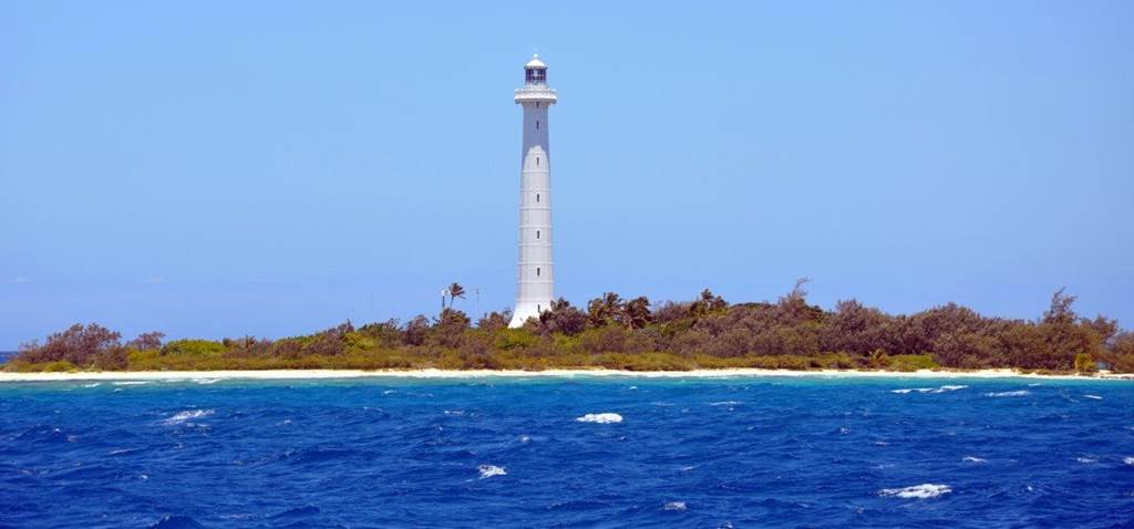 Îlot Amédée coiffé d'un phare élancé